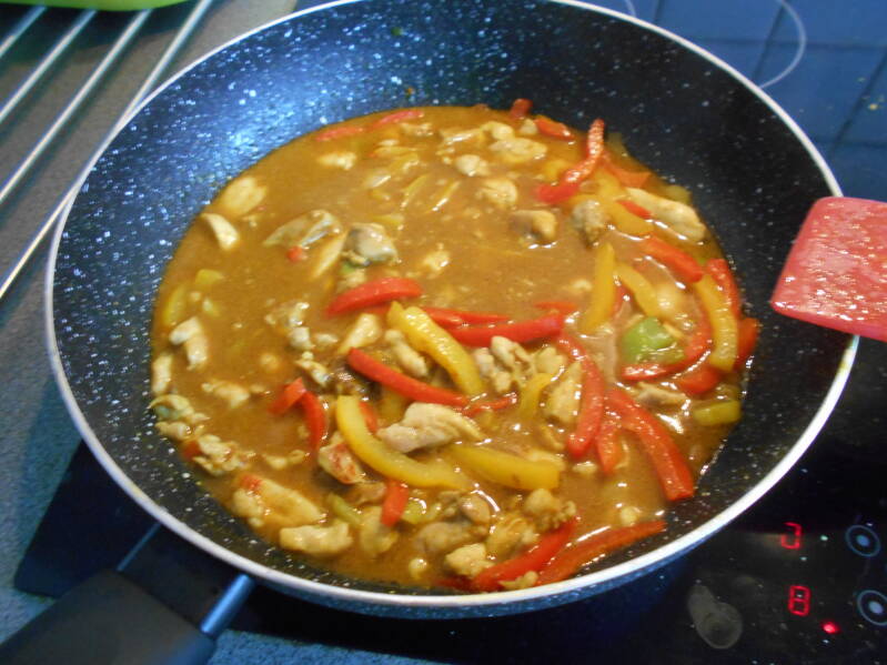 3. Roerbak de kipfilet in 2 eetlepels wokolie goudbruin.